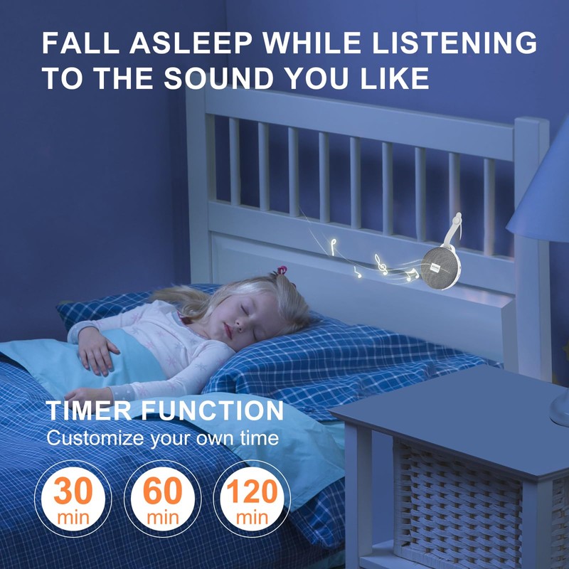 - Memory function and timer: You can keep the noise machine on all night or set it to turn off automatically for 30, 60 and 120 minutes, depending on your needs without disturbing your sleep time; the next time you turn on the device, you can retrieve the previous sound and volume settings without having to repeat it.