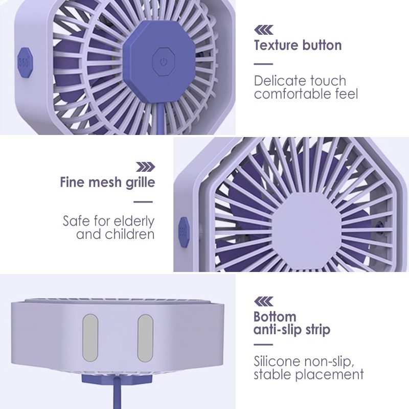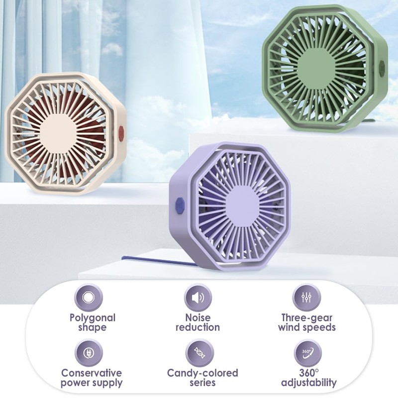- Small and powerful: Simple hexagonal appearance and compact housing design, can be placed and used in a small space. The table fan uses 5 blades to press the air firmly and direct the wind far away.
