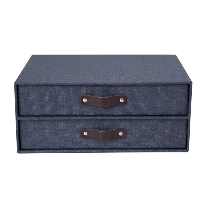 Bigso Birger 2-Drawer Canvas Fiberboard Easy Pull Handle Document Letter Box, 5.7 x 13 x 9.8 in, Blue
