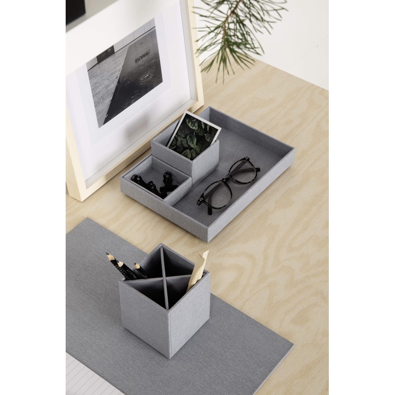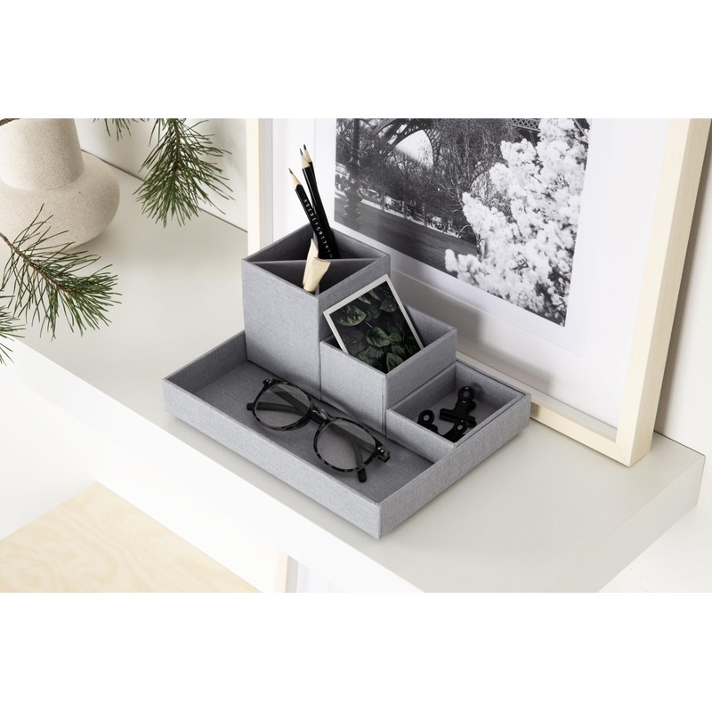 Bigso Box of Sweden LENA Desk Organiser for Pens, Paper Clips, Sticky Notes etc. - Sorting Box with 4 Compartments - Fibreboard and Paper Organiser System in Linen Look - Light Grey