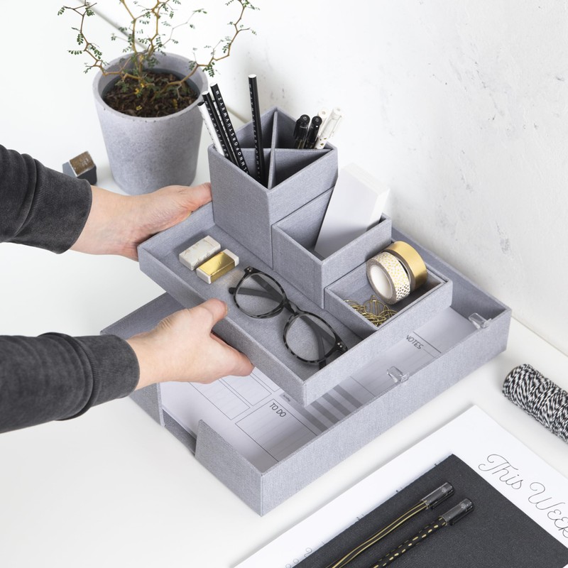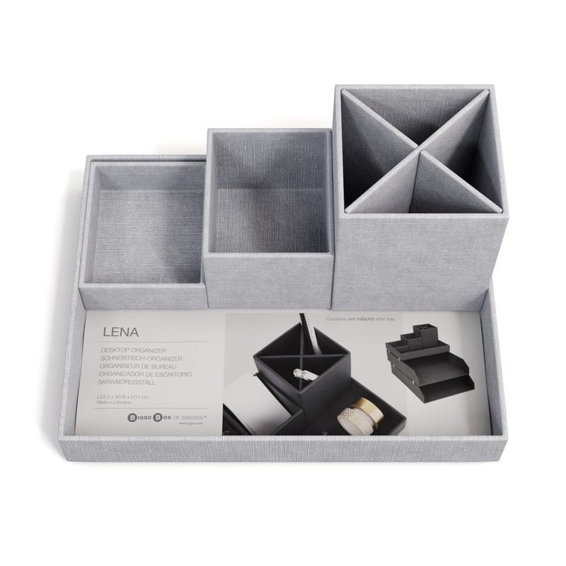 • Modern look: the four organiser boxes are coated with special paper that both looks and feels like linen. So they are a stylish addition to any office.