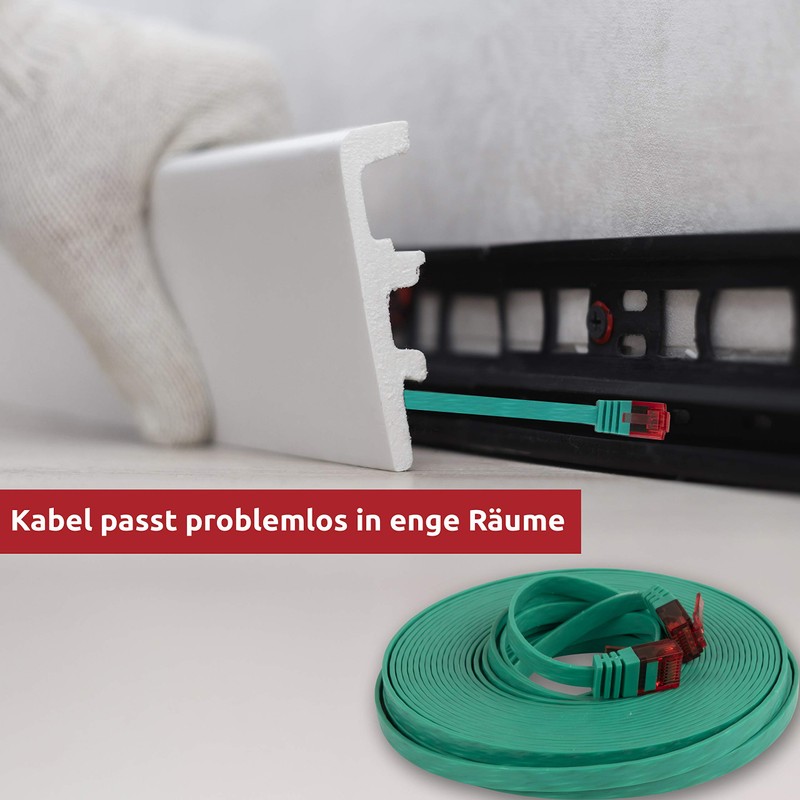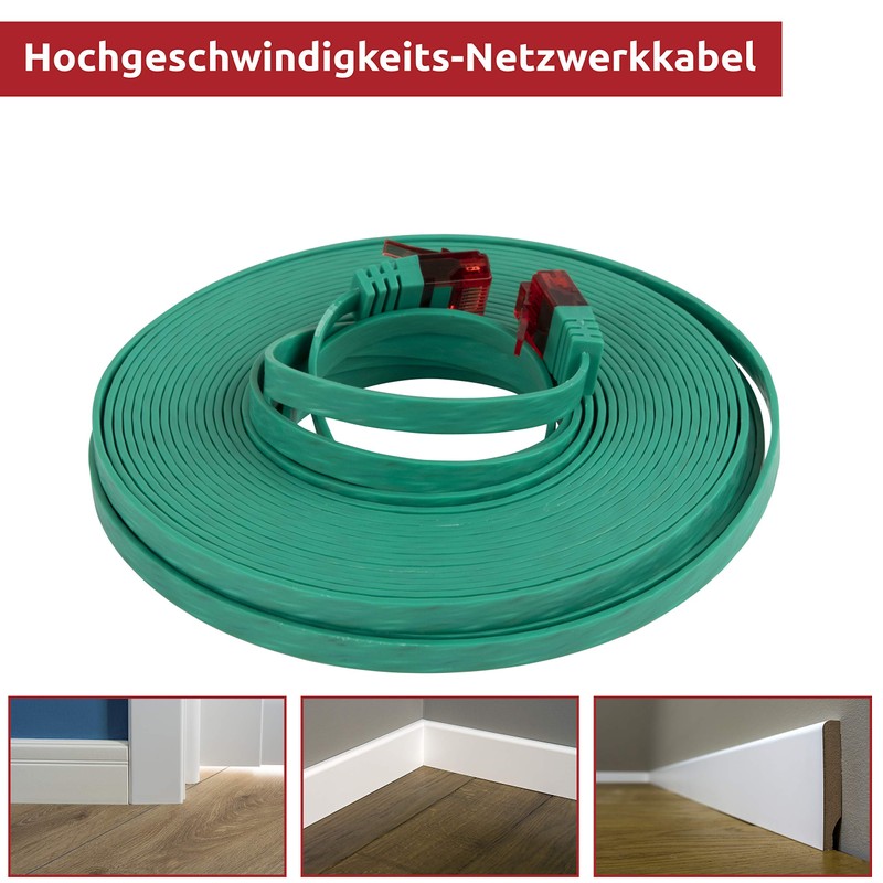 - Flat patch cable space-saving laying under carpets, floorboards, skirting boards, skirting boards, skirting board, cable duct, bending around corners and edges, as a feed-through, door frame