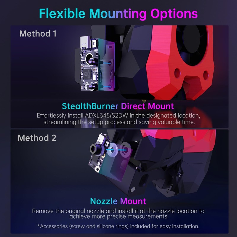 - 【Flexible Mounting Options】Method 1: StealthBurner Direct Mount (Effortlessly install S2DW in the designated location, streamlining the setup process and saving valuable time.) Method 2: Nozzle Mount (Attach near the nozzle for precise measurements. Accessories included for easy installation.)