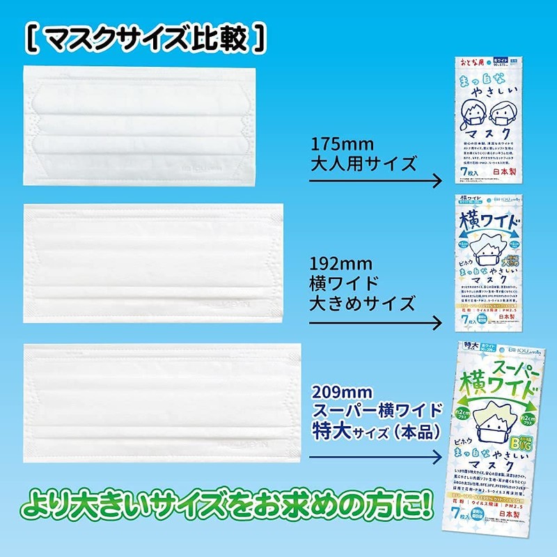 Bihou Mask, Made in Japan, Disposable Non-Woven Mask, Extra Large Size, Prevents Ear Pain, Flat Rubber, Skin-Friendly Inner Surface, Lightweight, Comfortable, Pollen, Virus, and Splash-Proof, Super Wide, Gentle Mask (Individually Packaged), 7 Pieces
