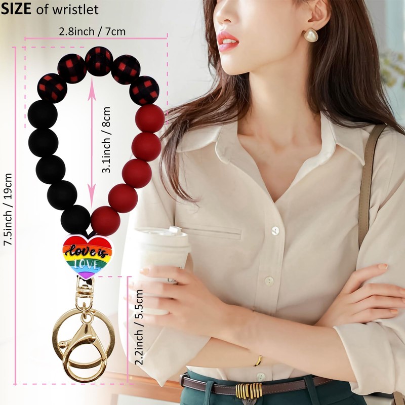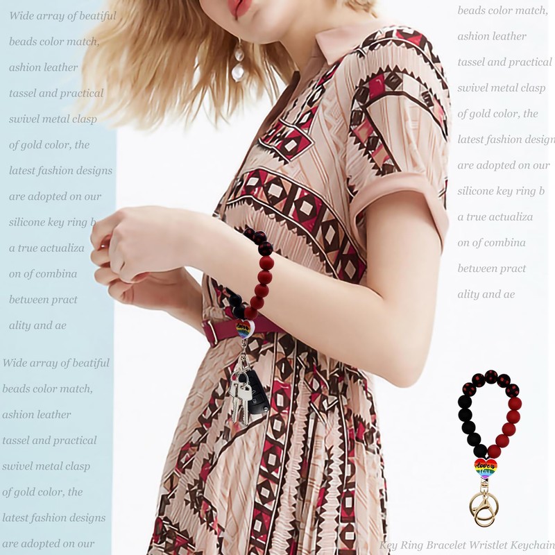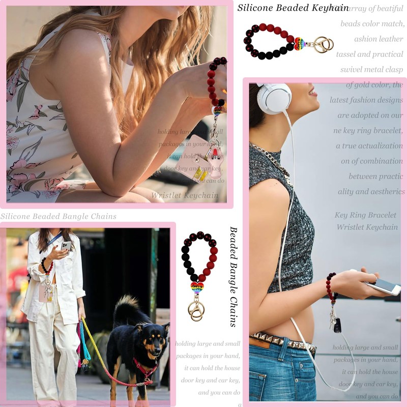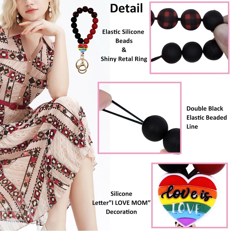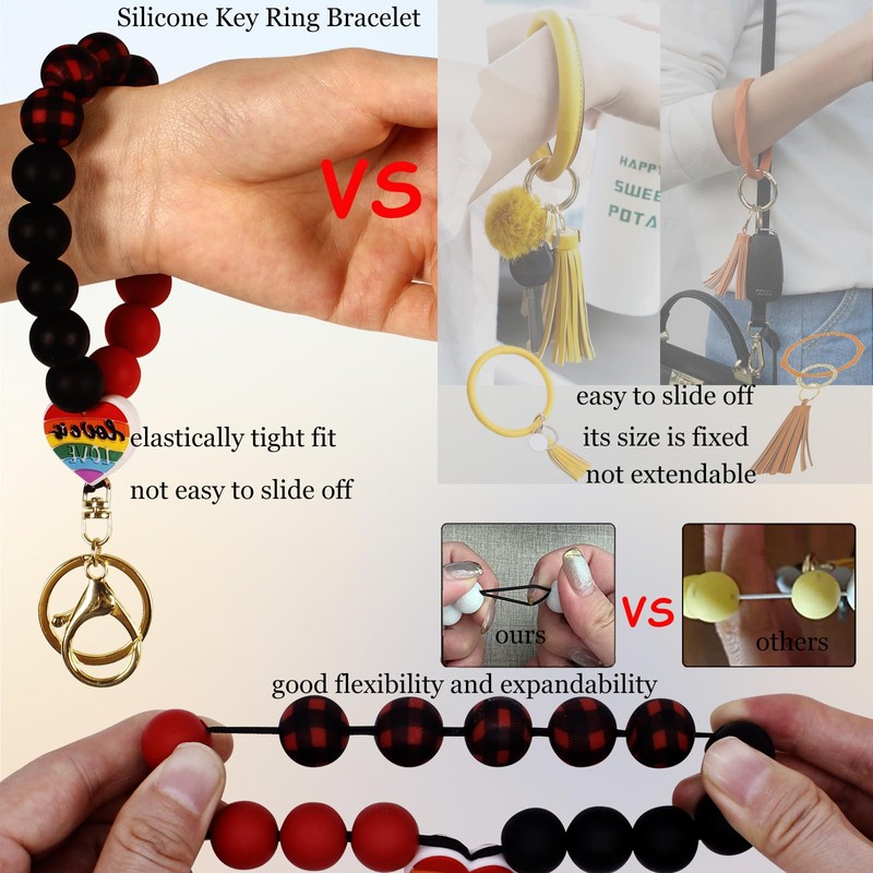 - Elastic Closure: this beaded keychain bracelet is lightweight, bracelet is composed of silicone beads with a metal swivel clasp hook(easy to open and close). The silicone bead is smooth and elastic, and all the beads are threaded together with a double-stranded line.