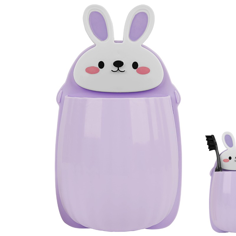 Biiange Rabbit Toothbrush Holder, Cute Toothpaste Holder, Space-Saving Bathroom Organizer for Toothbrushes, Toothpaste (Purple)