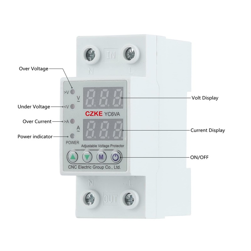 BIK YC6VA Household Din Rail Adjustable Digital Dual Display Limit Over Current Protector AC 230V 40A 63A(40A)