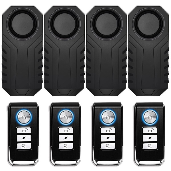 Bike Alarm with Remote,USUPERINK Bike Alarm with Remote,113db Anti-Theft Vibration Security Alarm for E-Bike Vehicle Bicycle Electric Tricycle,Sensitivity Adjustable,IP55 Waterproof,SOS Function 4PK