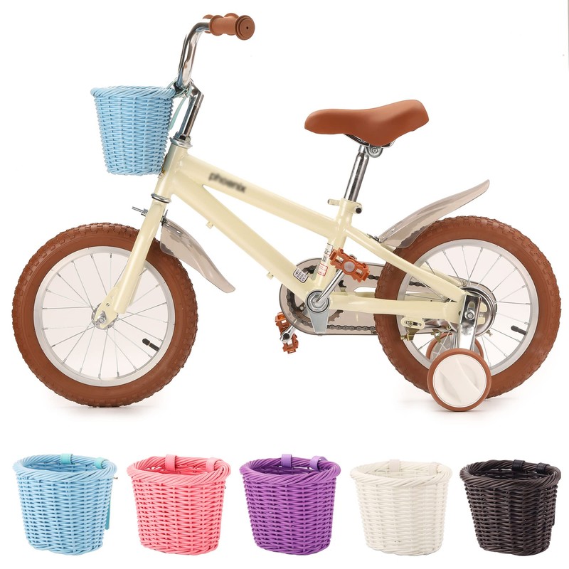 Bike Basket for Girls Front Bike Accessories for Kids Small Woven Wicker Cruiser Bicycle Basket with Handlebar Streamers Bell Boys16 Bike Girls Cycling Ages 3-18
