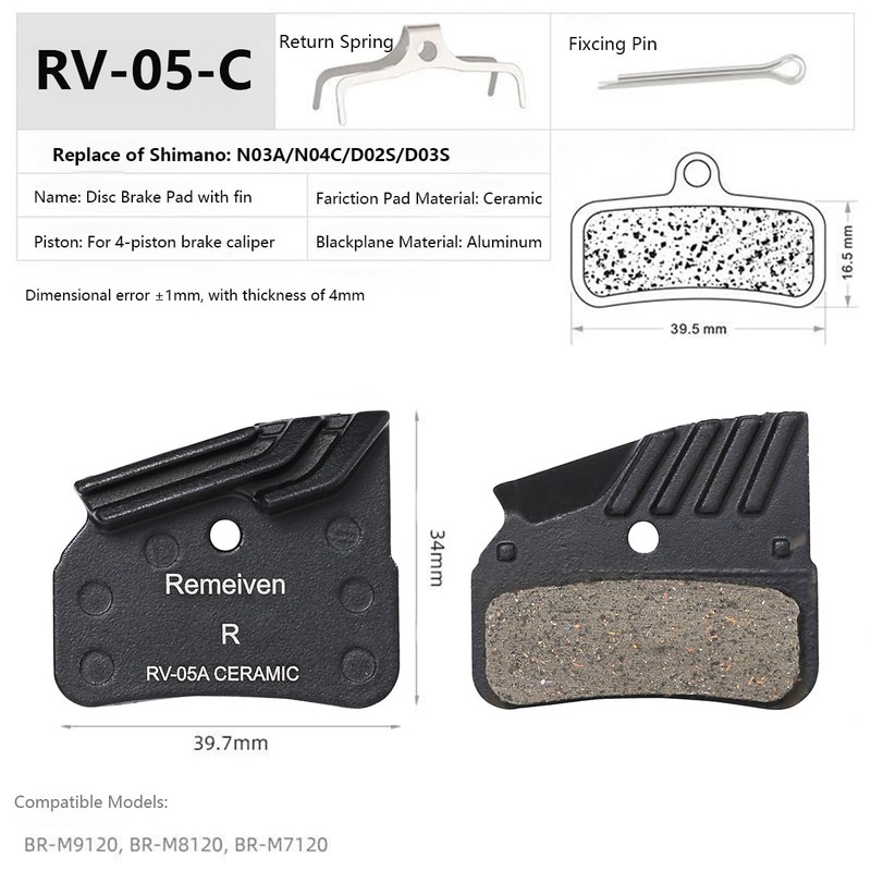 - Disc brake pads for SHIMANO: Compatible with BR-M9120, BR-M8120, BR-M7120