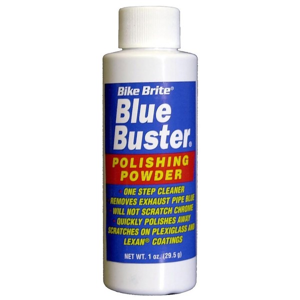 Polishing powder for those old blue pipes. Wet towel and polish blue away; will not scratch chrome. Can be used on chrome, brass and stainless steel. 1oz. can, 24 per case; sold each.