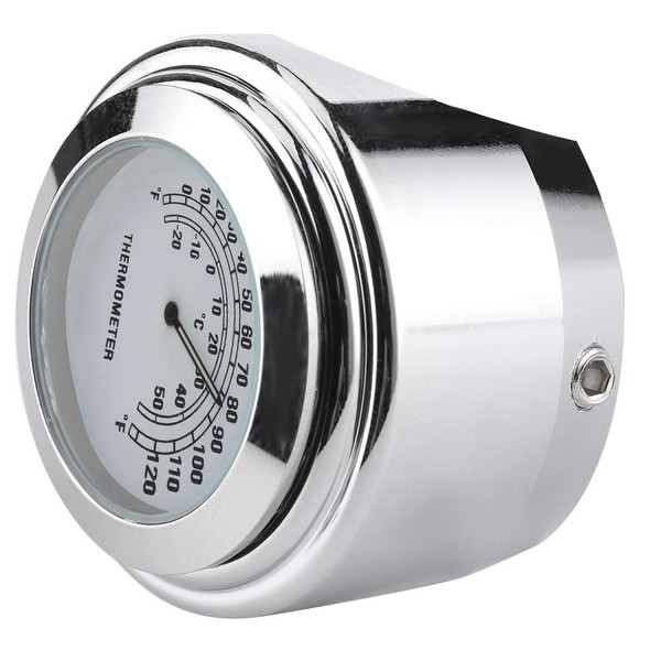 Bike Handlebar Clock Handlebar Thermometer, 1In 7/8In Handlebar Mount Thermometer 50℃ Measuring Dial Weatherproof , For Motorcycle (White)