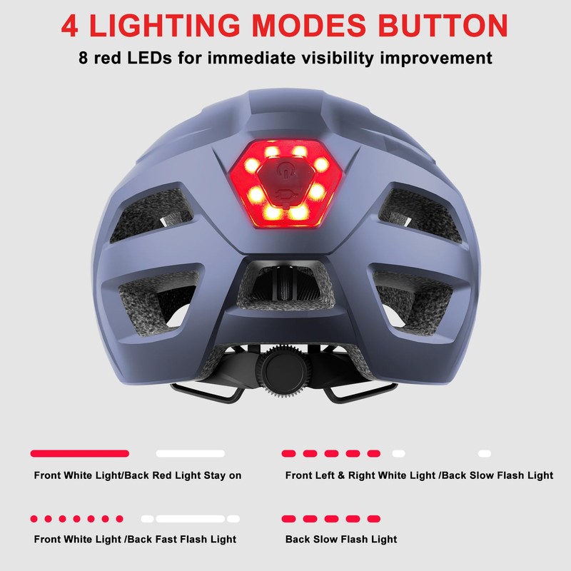 - 【Front and Rear LED Lights】: Silkycasters bike helmet has 9 white LEDs on the front and 8 red LEDs on the back. (The LED lights have 4 modes: constant, blinking, fast blinking, warning blinking. Provides better safety and visibility at night and helps people behind you clearly identify where you are going.