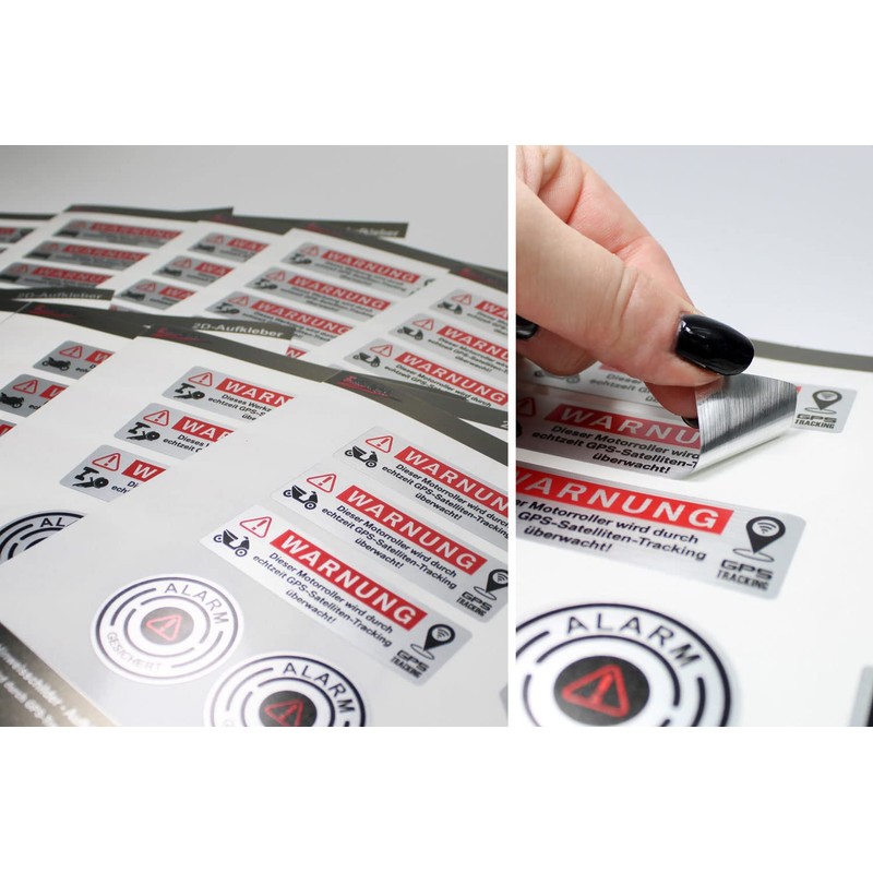 - High-quality premium sticker sets in elegant brushed aluminium look – secure your valuables by indicating GPS tracking for your car, automobile, motor vehicle, car, SUV.