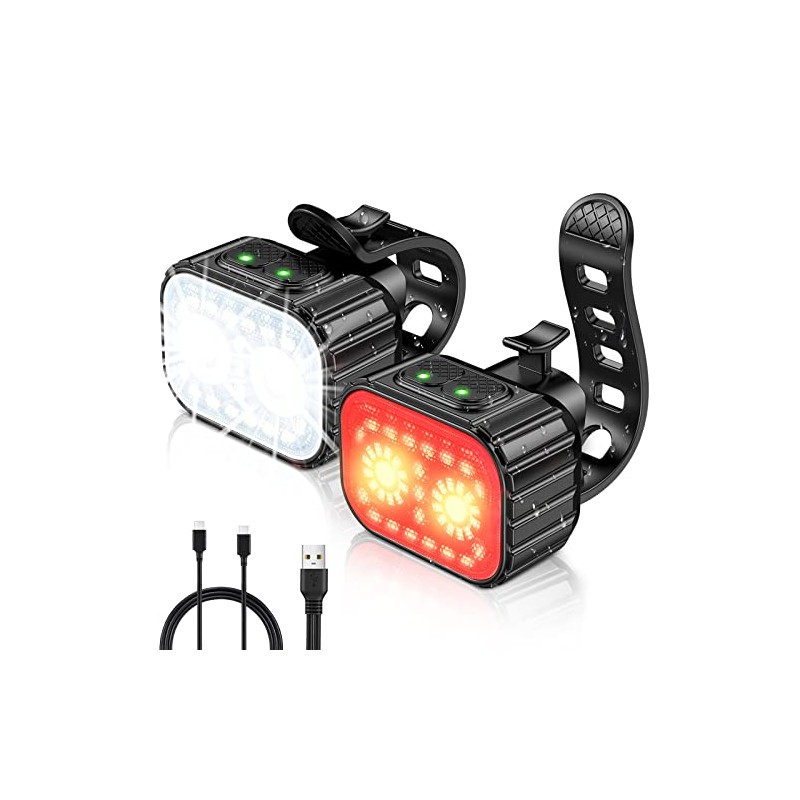 - IPX6 WATERPROOF - Reaching IPX6 waterproof level, this bicycle light set works well on rainy or foggy days, allowing you to enjoy your ride. The USB port comes with a waterproof silicone cover that effectively blocks water and extends its life.