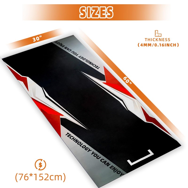 Treadmill mat floor protector designed for fitness equipment, the sizes are 24*47IN / 30*60IN, you can choose the right treadmill floor mat according to the size of the equipment.