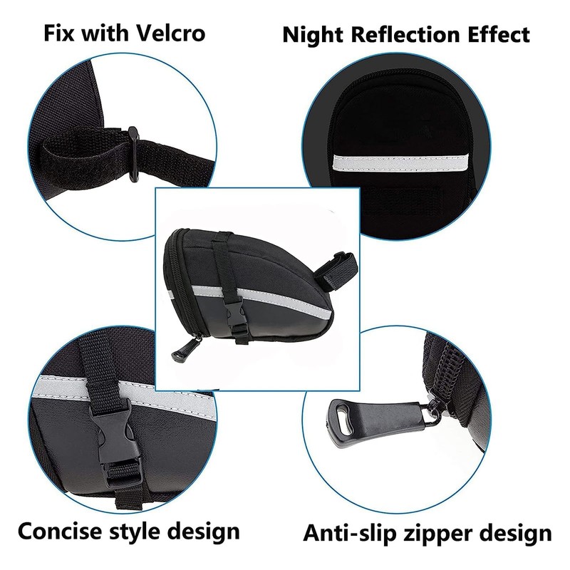 - 【Easy to Carry and Install】Tool-free mounting system, this bike bag under the seat is easy to install and remove. Zipper opening for easy putting in and taking out of items, unique compartment inside the bag helps to store items separately.