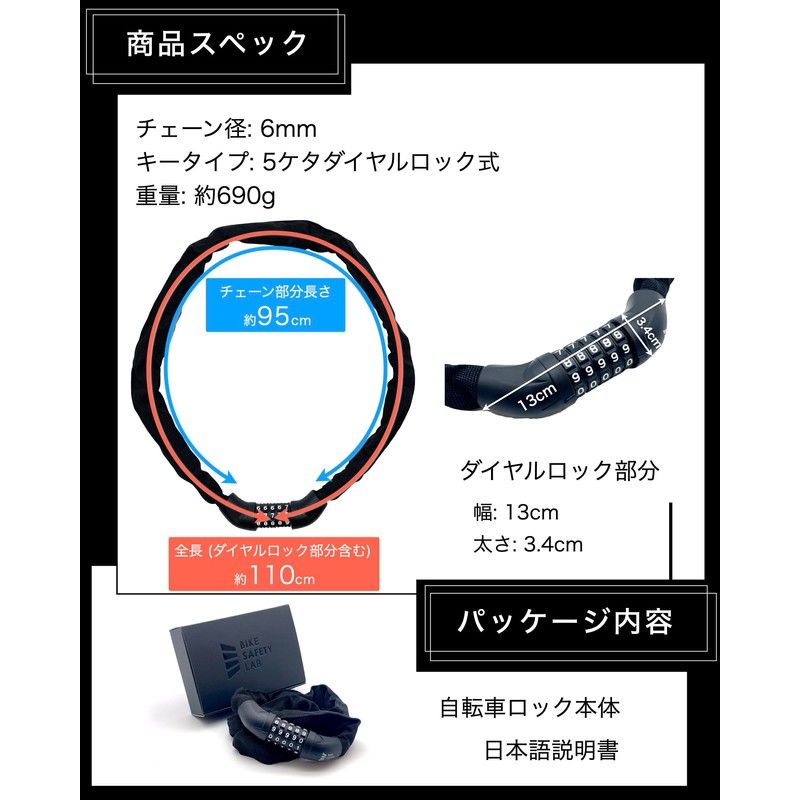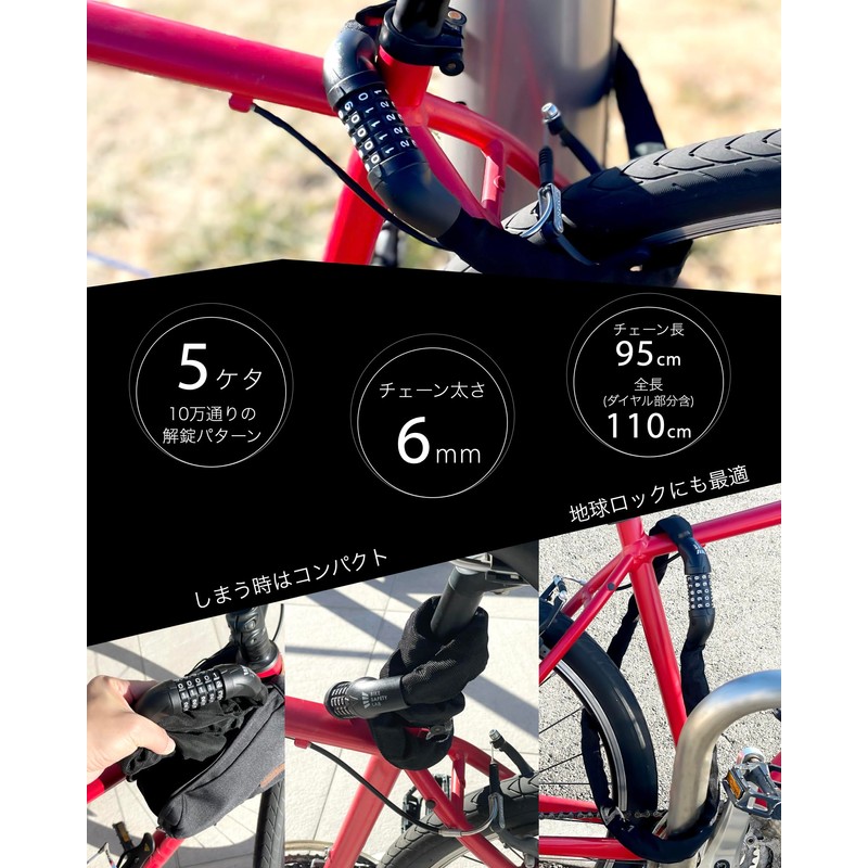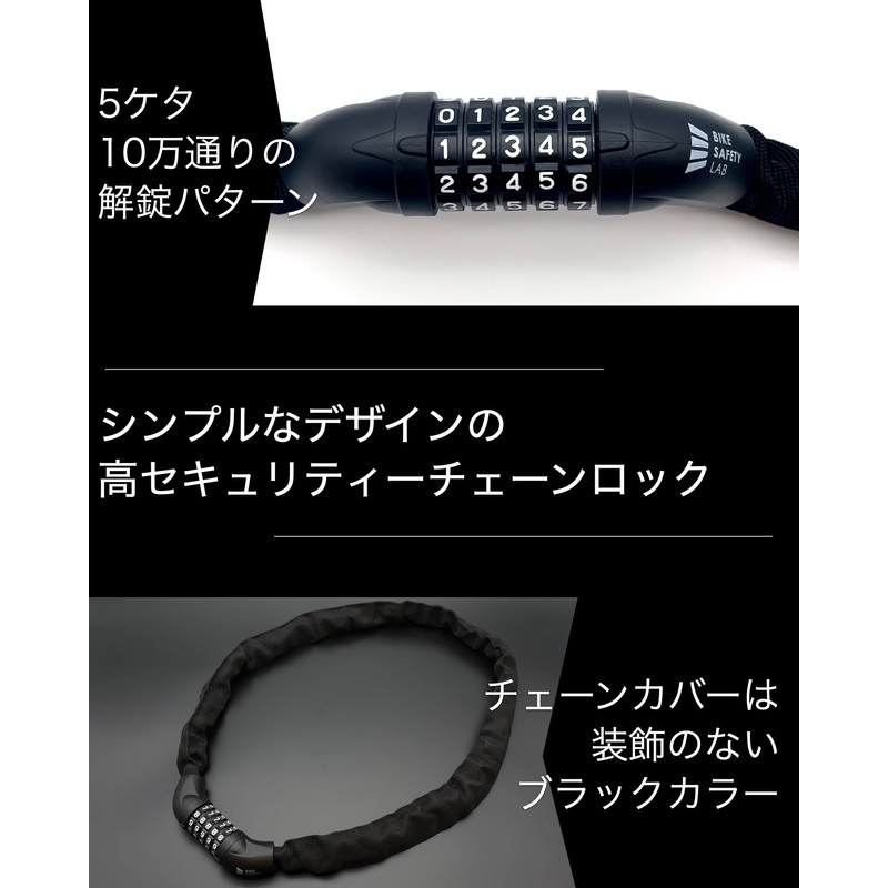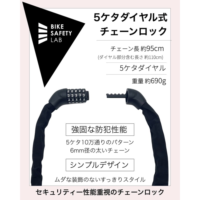 Bike Safety Lab Chain Lock, 5 Digit, Dial Type, Chain Length: 37.4 inches (95 cm), Total Length: 43.3 inches (110 cm), Chain Thickness: 0.2 inches (6 mm), Approx. 24.3 oz (690 g), Anti-Theft, Key,