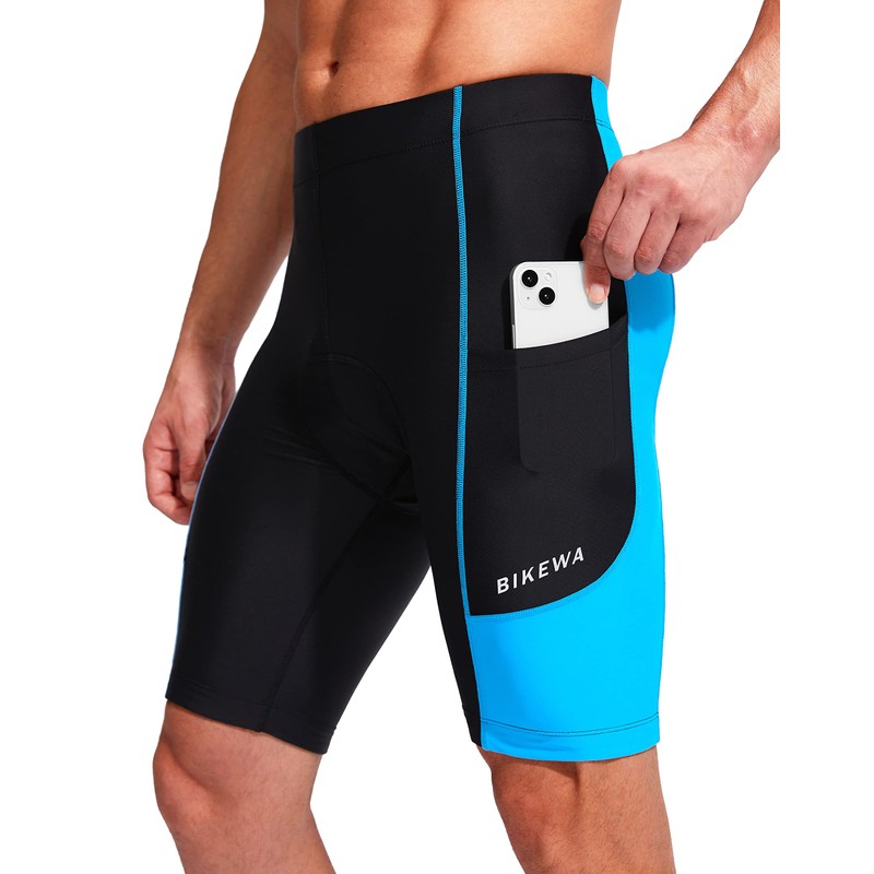 Bike Shorts for Men 3D Padded Bicycle Cycling Underwear Road Biking Biker Mountain Riding Cycle UPF 50+ Shorts Zipper Pockets?Black/Sky Blue 3X-Large