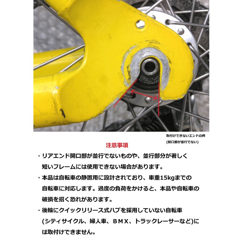 - 3 major benefits of "Bike Guy QR Stand" Easy to put on and take off with just QR operation. (30 seconds after you get used to it, no tools required); You can even use bikes previously not equipped with a stand (disc brake, rear sus, deformation frame, etc.); Does not damage the frame! (You can rest assured that it will not leave marks on high end bikes and carbon frames)