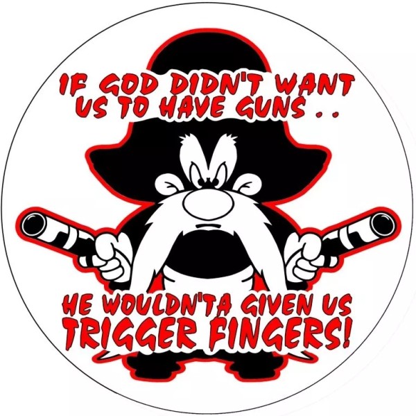 BIKERSTUFFUS YOSEMITE SAM HE WOULDN'T A GAVE US TRIGGER FINGERS BUMPER STICKER WINDOW STICKER