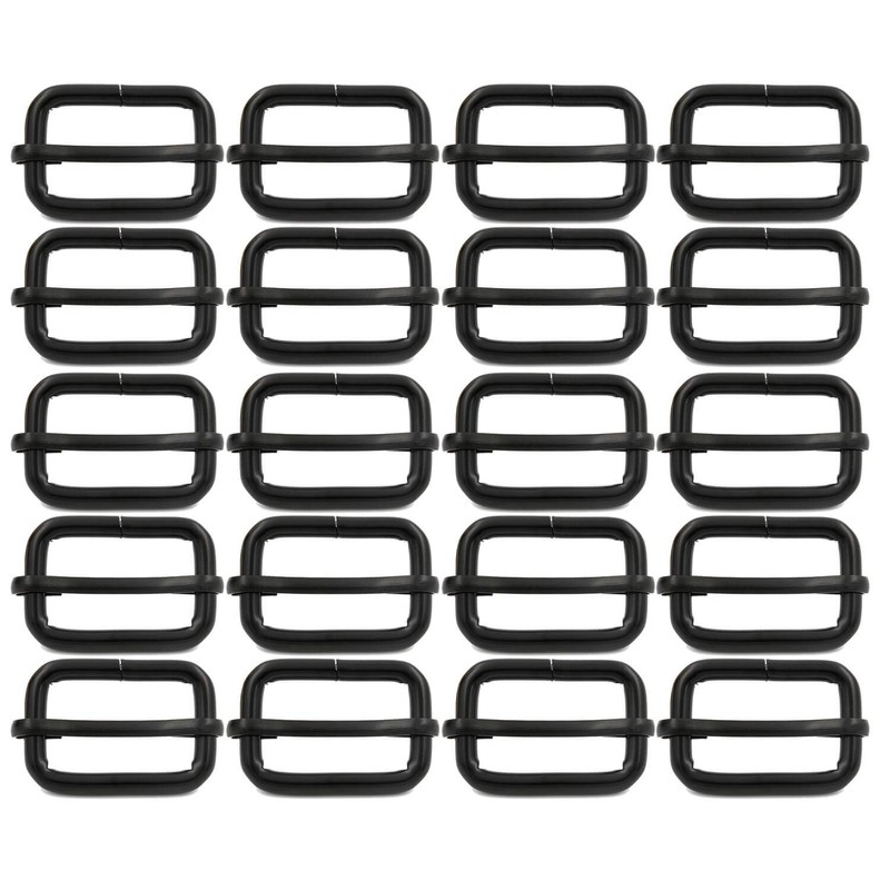 BIKICOCO Metal Slide Adjuster Buckle Tri-Glides with Movable Center Bar, for Straps, 1 x 5/8 Inch, Black, Pack of 20
