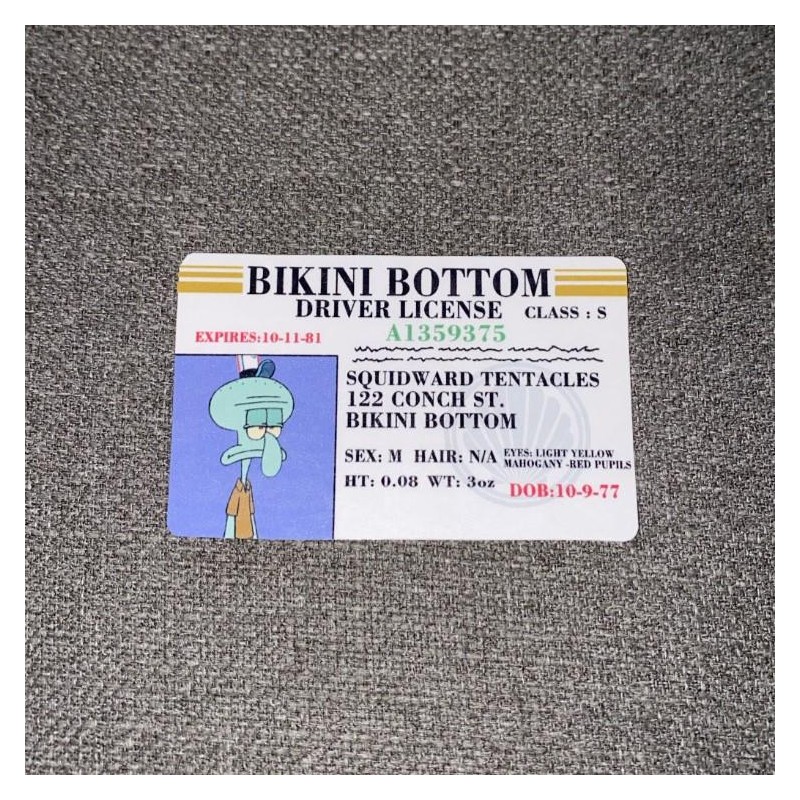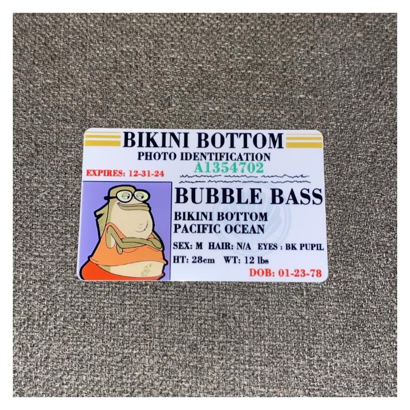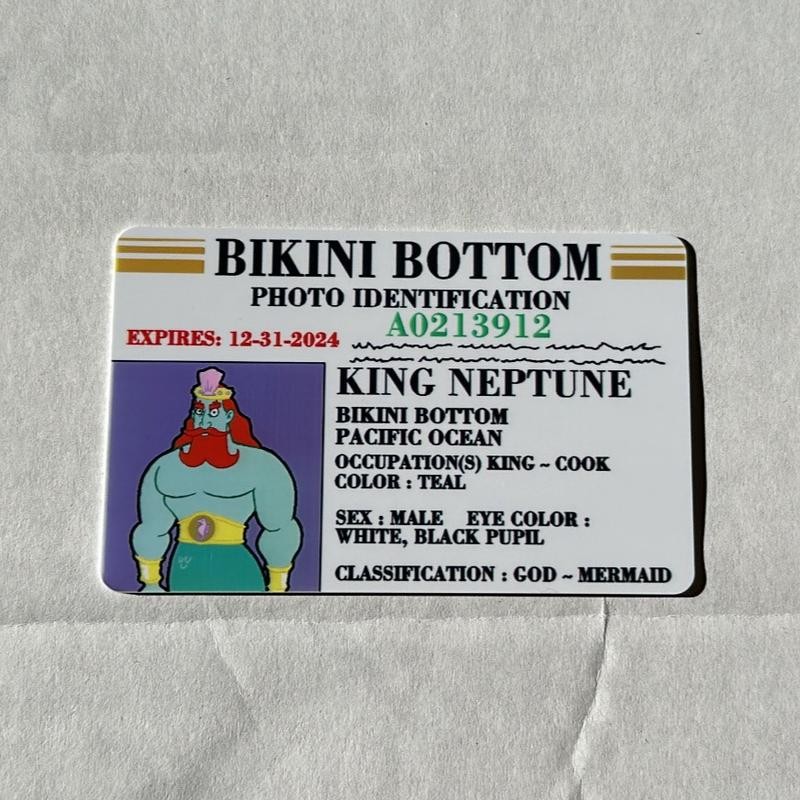 Bikini bottom card - options: king neptune, Back of license: none, ID holder: yes