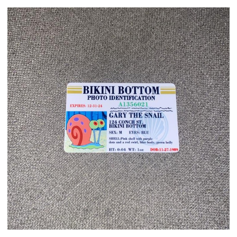 Bikini bottom card - options: pearl, Back of license: magstripe + barcode + front of license information, ID holder: yes