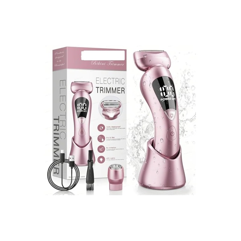 Bikini Trimmer for Women Underarm Public Hairs Rechargeable - Body Groomer IPX7 Waterproof Wet/Dry Use for Legs/Arm/Underarm