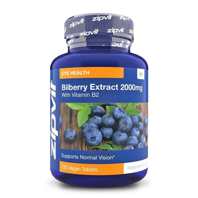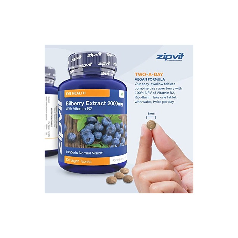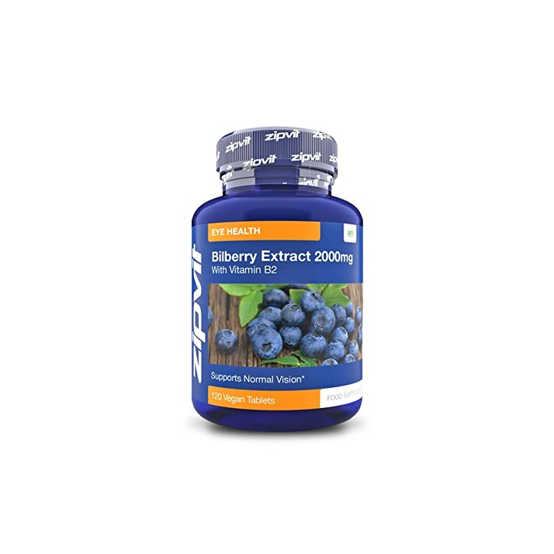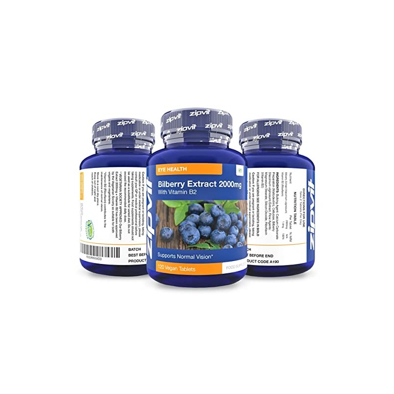 Bilberry Extract 2000mg with Added Vitamin B2, 120 Vegan Tablets. Vegetarian Society Approved.