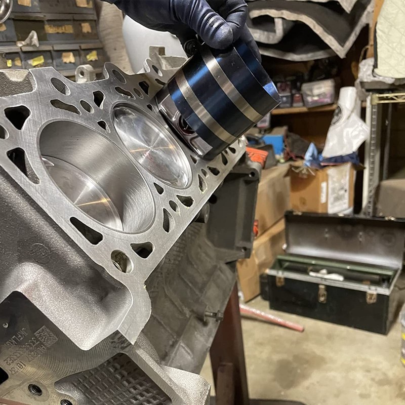 - Use an oil lubrication (not included) on ring and piston before compressing; Place piston inside the cylinder, tighten the compressor, lightly tap the piston into the bore with a rubber mallet (not included) while holding downward pressure on compressor.