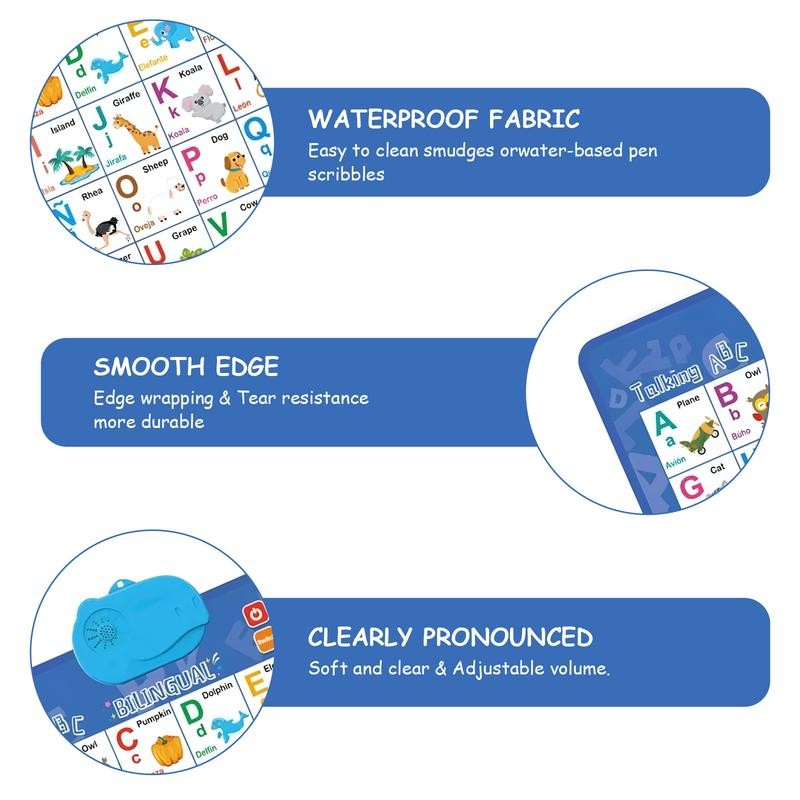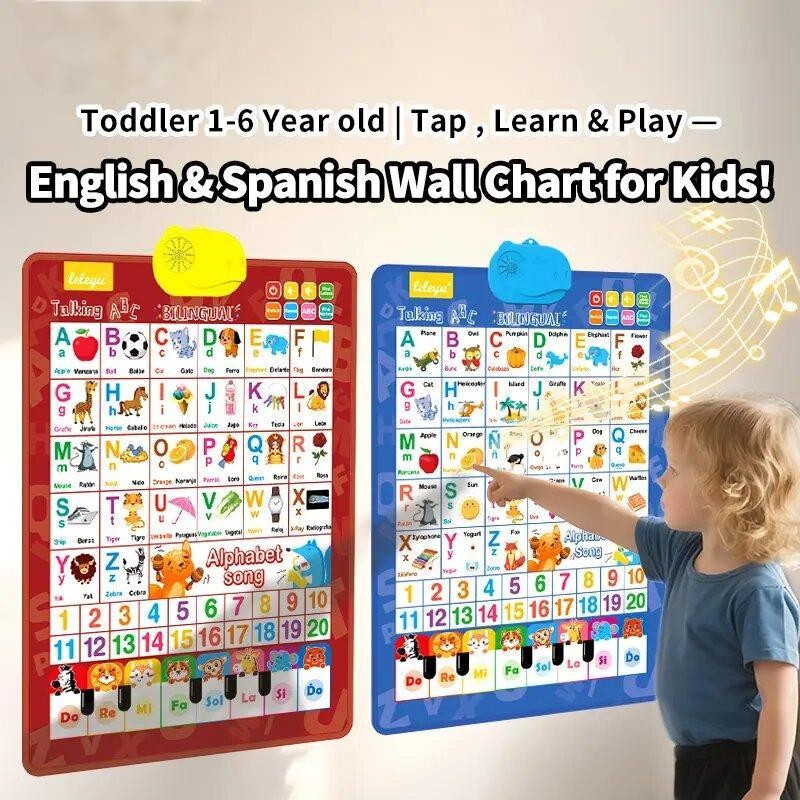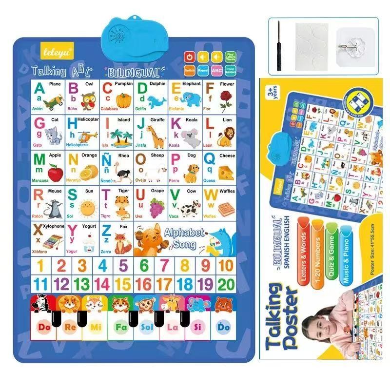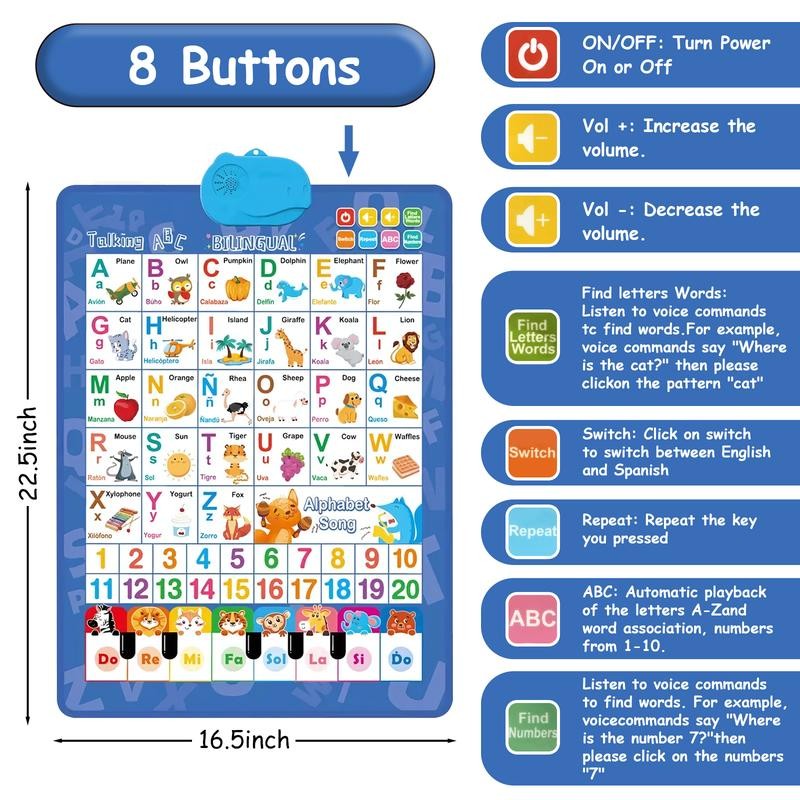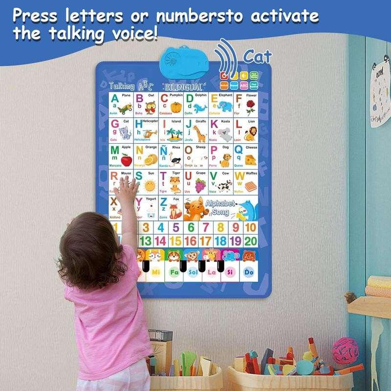 Bilingual Talking Wall Chart for Kids-English &Spanish Learning Poster with Songs, ABCs,Numbers, Animal words & Piano-InteractiveEducational Toy for Toddlers 1-6-No Screen,Battery Powered classroom use:_Bilingual-English Pattern Theme