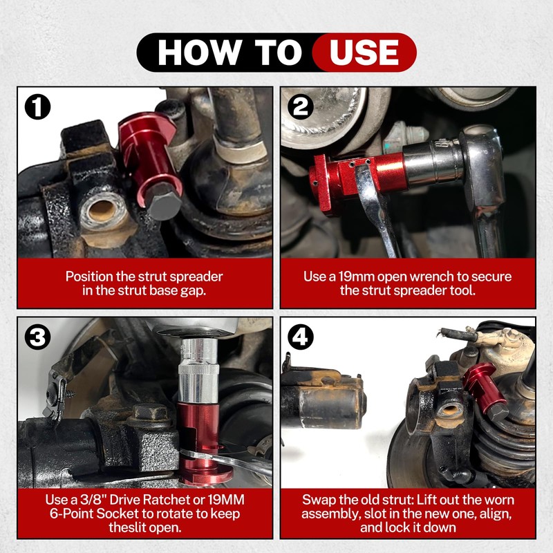 • Attention: Do not use power tools or air tools to drive this Strut Spreader Tool!!!