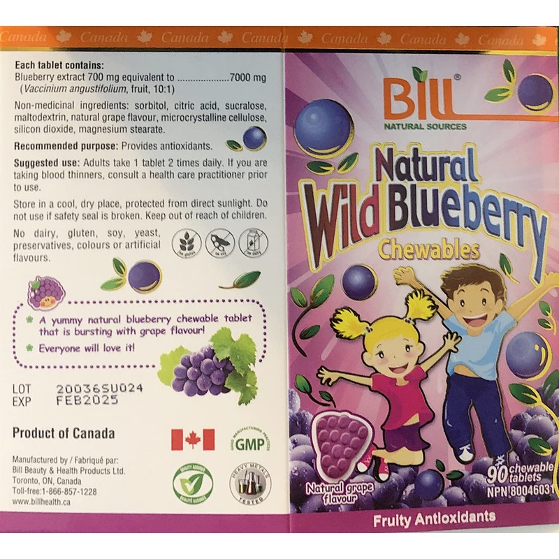 Bill Natural Sources Natural Wild Blueberry Chewable is made from wild blueberry, which contains higher anthocyanin levels than other varieties.