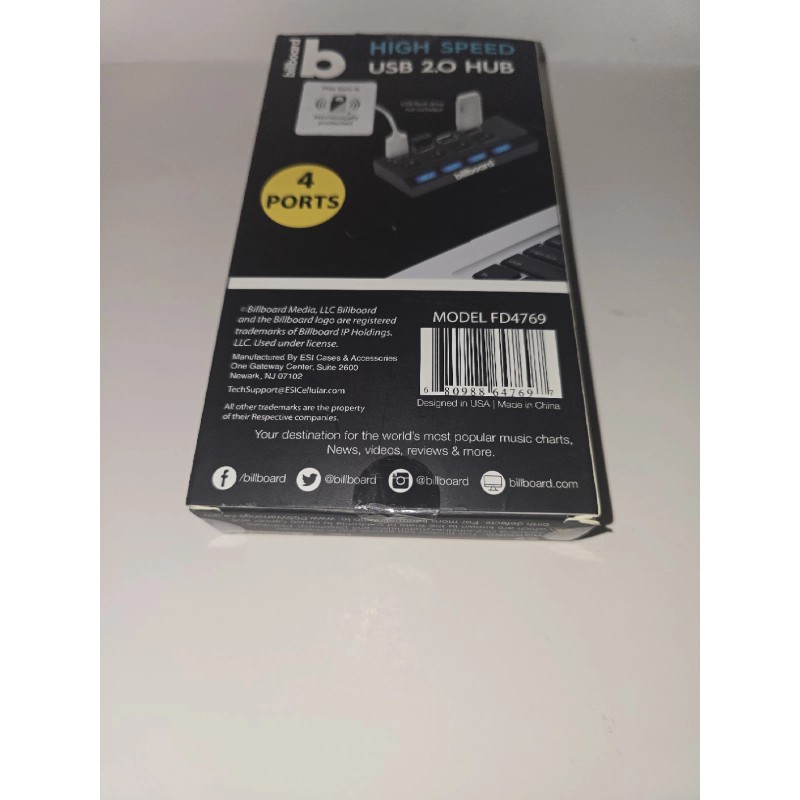 Billboard USB 2.0 High Speed 4-Port Splitter Hub NEW Multi Plug Travel Must TX