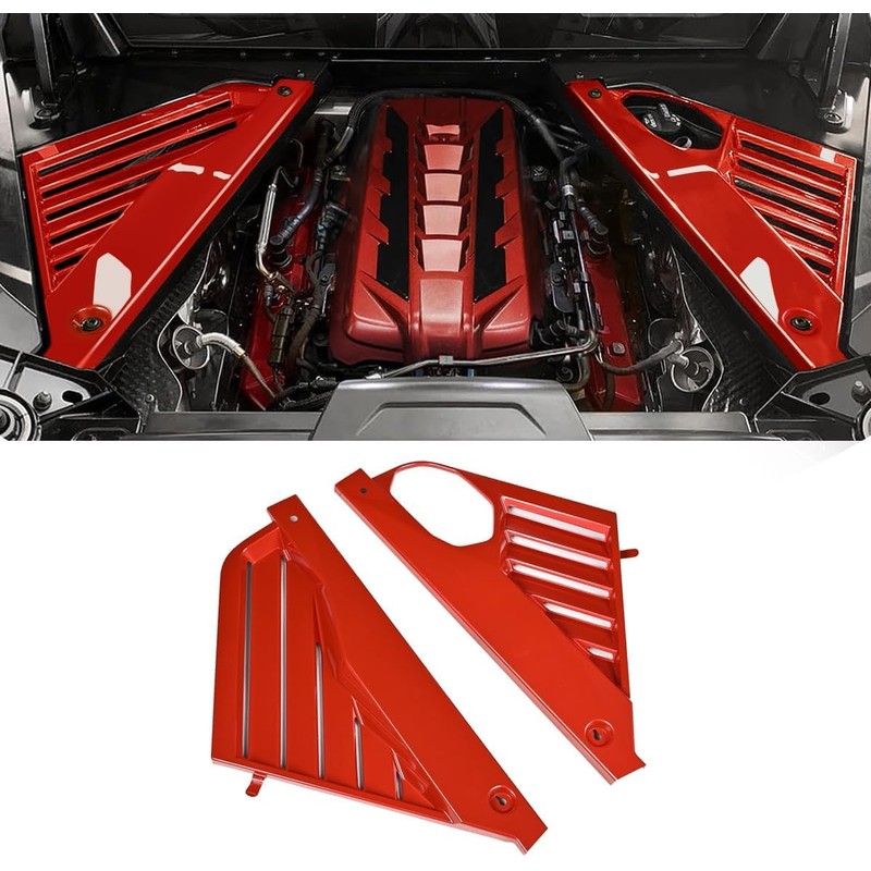 BILLFARO 2Pcs Red Engine Bay Panel Cover,Rear Engine Covers Left Right Engine Case Guards Protector Compartment Filler Covers for Corvette C8 Stingray 2020+ for C8 Z06 2023+