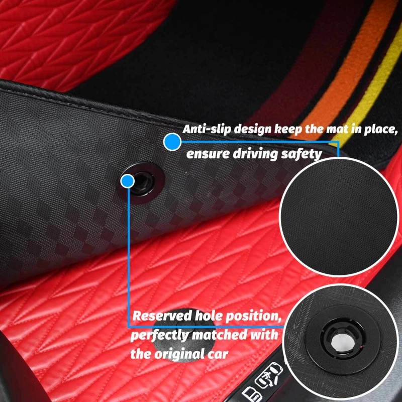 The floor mats is is composed of two fully enclosed artificial leather foot pads and two original nylon foot pads, which ensures the convenience of disassembling the fully enclosed foot pads. When you dirty the foot pads, you only need to remove the nylon foot pad on top and clean it. The combination of these two types of foot mats can better protect the cleanliness of the car interior and improve its aesthetic appeal