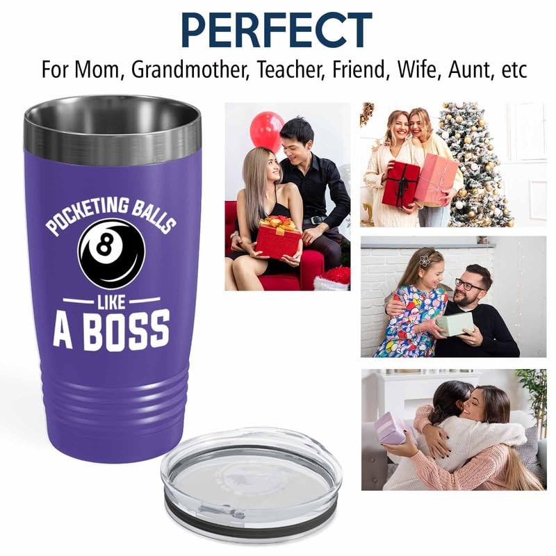 Billiard Purple Edition Viking Tumbler 20oz - Pocketing balls like - Pool Player Gifts Table Rail Balls Chalk Cue Sticks