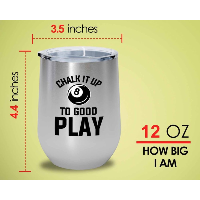 Billiard Silver Edition Wine Tumbler 12oz - Chalk it up - Pool Player Gifts Table Rail Balls Chalk Cue Sticks