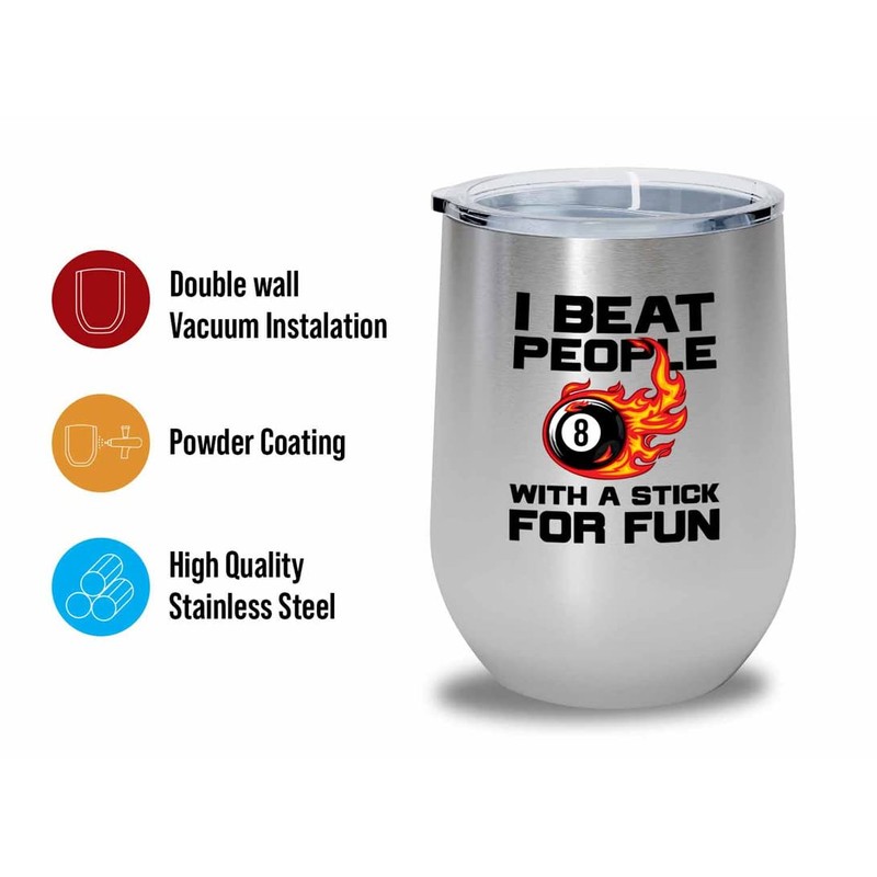 Billiards Player Silver Wine Tumbler 12oz - stick for fun - Pool Player Gifts Table Rail Balls Chalk Cue Sticks