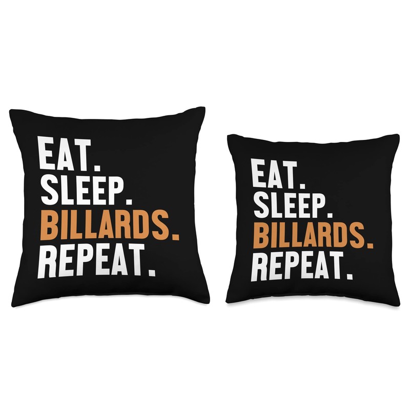 Billiards Pool Snooker Table Set Accessories Gifts Eat Sleep Repeat Pool Snooker Balls Billiards Throw Pillow, 16x16, Multicolor