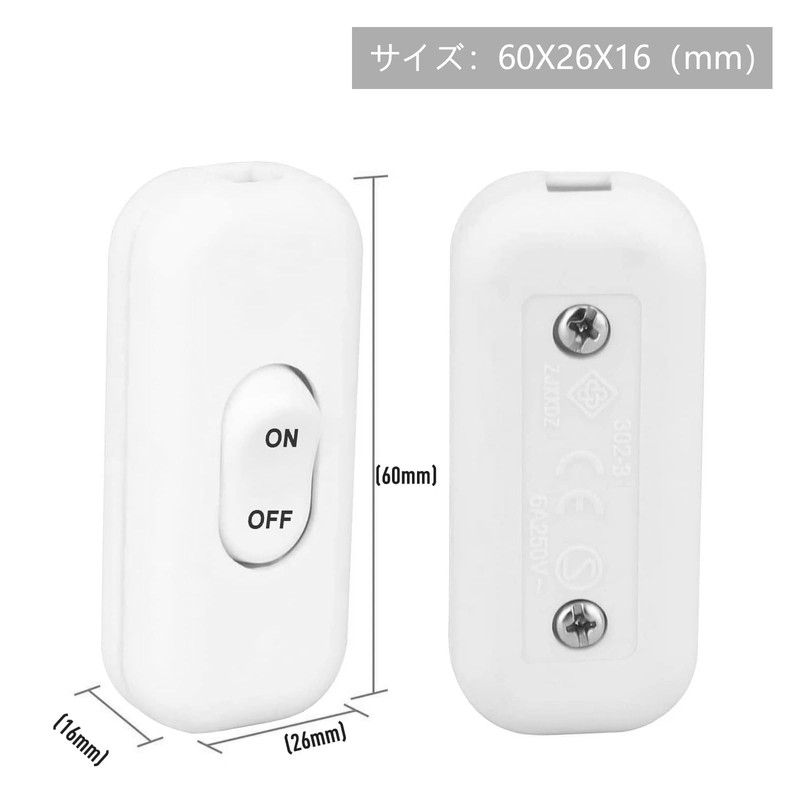 - Product Specifications: Color: White. Power: 6A, 110-250V Switch can be used for table lamps, mirror lamps, wall lamps. Feed through lamp inline switch with rocker switch control
