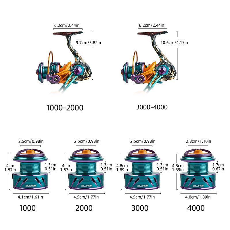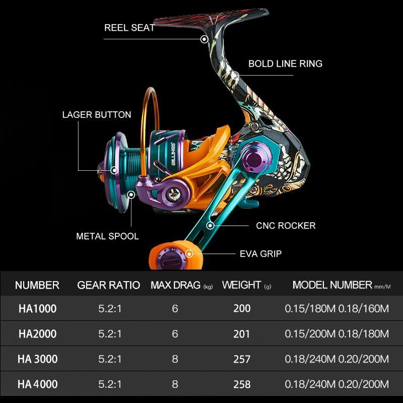 BILLINGS HA 1000-4000 Series Spinning Reel, 5.2:1 Gear Ratio, 8KG/18LB Max Drag, Durable Metal Fishing Reel For Freshwater And Saltwater Fishing Tackle, Fishing Equipment Christmas Gift Ideas - Color: Multicolor, Specification: 3000