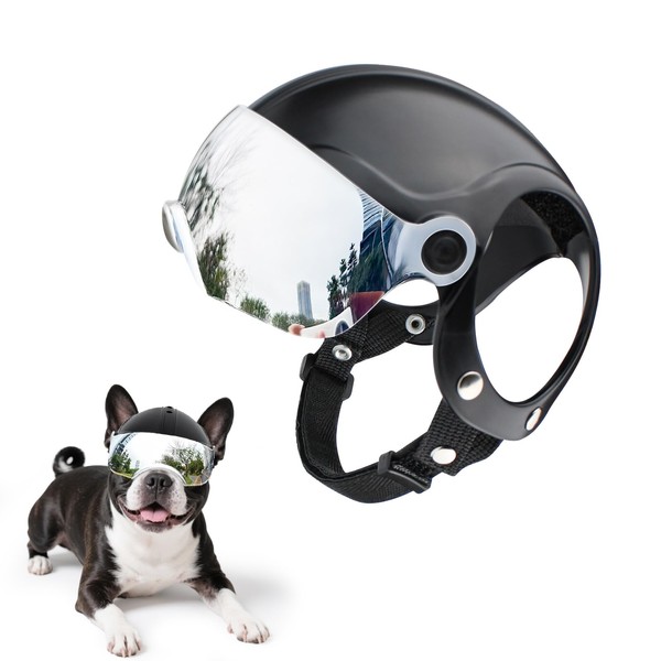 - Dog Helmet with Drop-Down Goggles: Billionchains dog helmet equipped with silver drop-down anti-UV dog goggle for wide vision, protects eyes from bugs/ wind/ debris/ sun when dog in a car hang head out the window, or take ride on your bikes