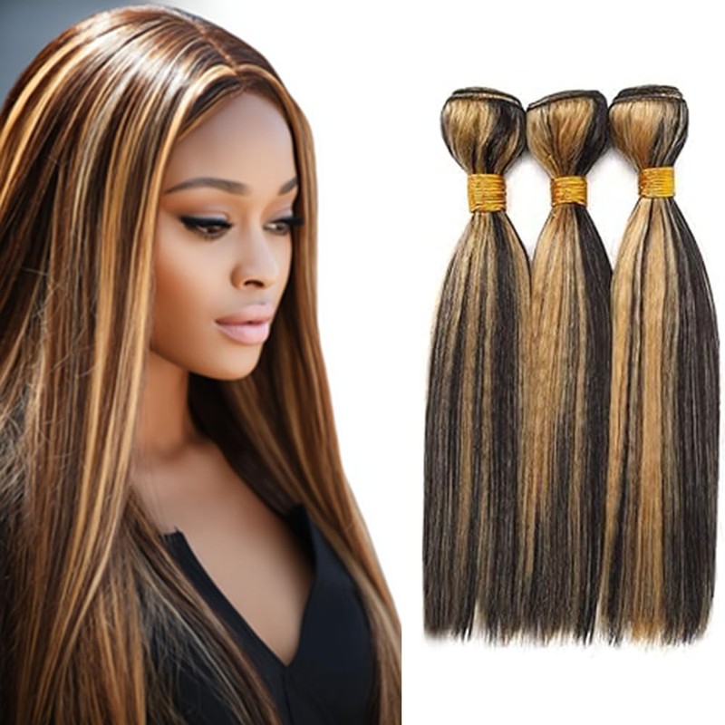 BilltiiWW Highlight Bundles P1B27 Straight Human Hair #1B Mixed With #27 Straight Human Hair Bundles Brazilian Weave Soft and Silky for Black Women 14 14 14 Inch