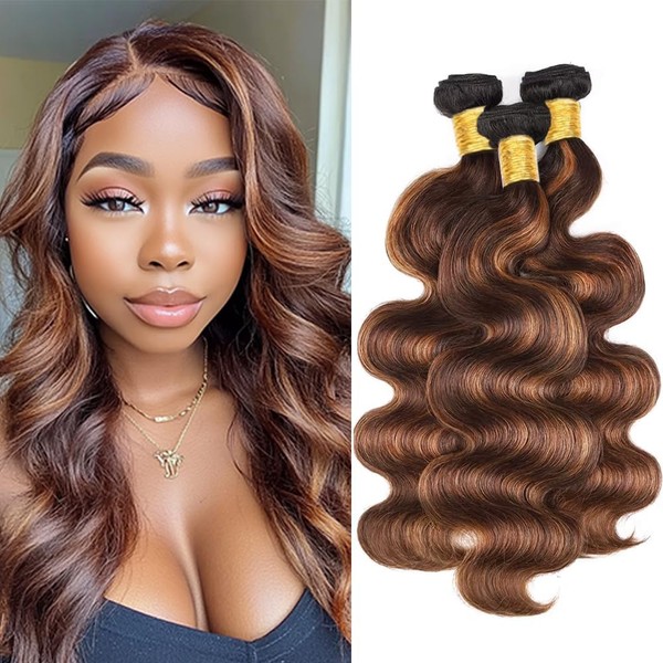 BilltiiWW Ombre Body Wave Bundles Human Hair P430 Body Wave Bundles Brown and Light Brown two tone Brazilian Human Hair Soft and Silky for Black Women 10 12 14 Inch