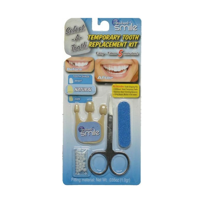 Dental work can be costly and sometimes replacing a missing tooth can take weeks or even months. Our replacement tooth kit is not a permanent fix, but it will allow you to have a confident smile while you are waiting to have the proper dental work done.