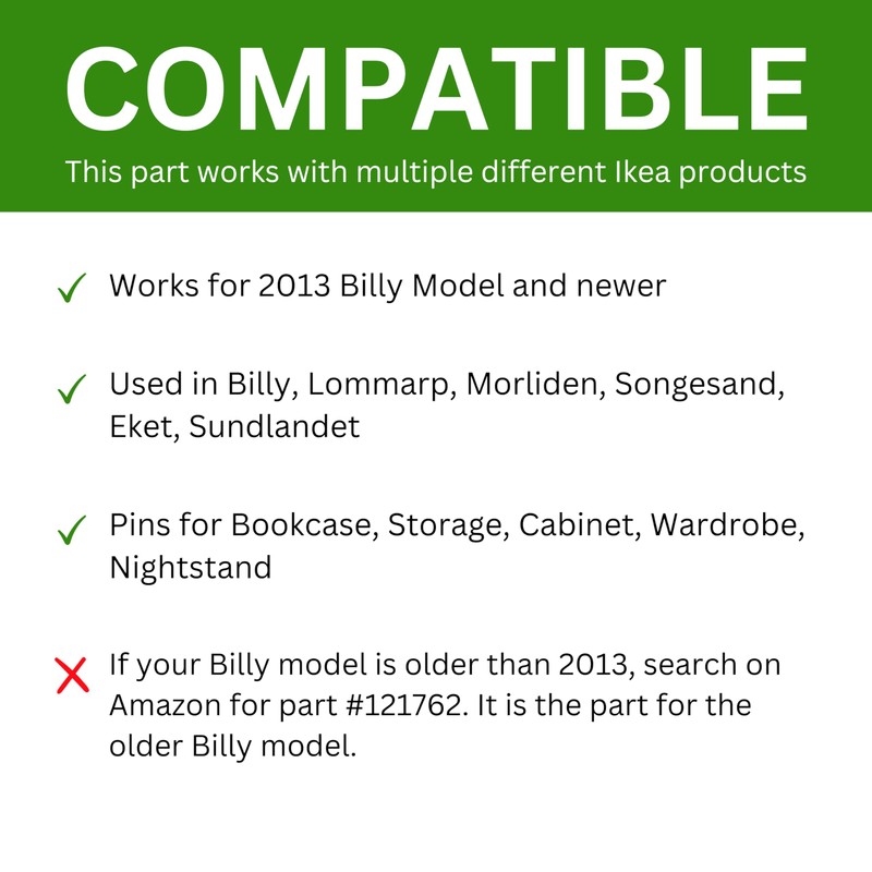 Billy Bookshelf Pins | Replacement for IKEA Part #131372 | by Spare Hardware Parts | Pack of 12