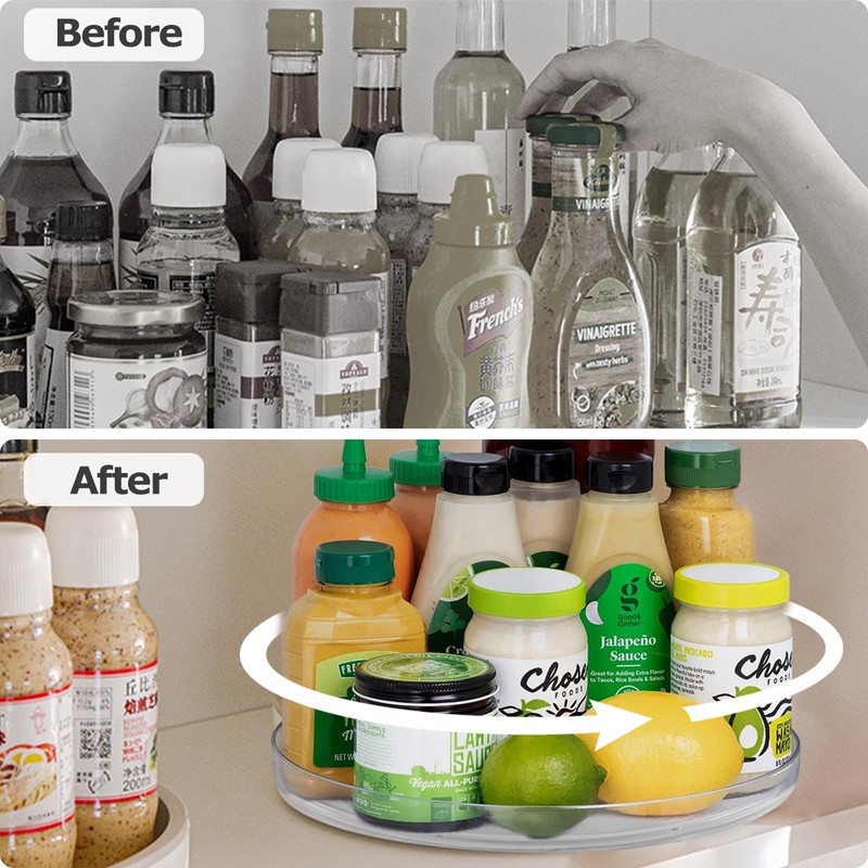 - 【Hochtransparent】 Dieser Drehteller besteht aus transparentem Material, so dass Sie deutlich sehen können, was Sie auf ihm abstellen. Dass Sie schnell finden können, was Sie brauchen.