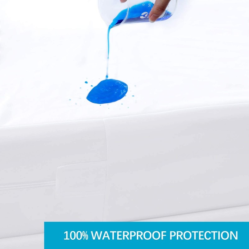 - 100% Waterproof: With breathable and waterproof membrane, this mattress protector is more durable to wash. Six-sided premium mattress protector blocks perspiration, bed wetting and liquids.